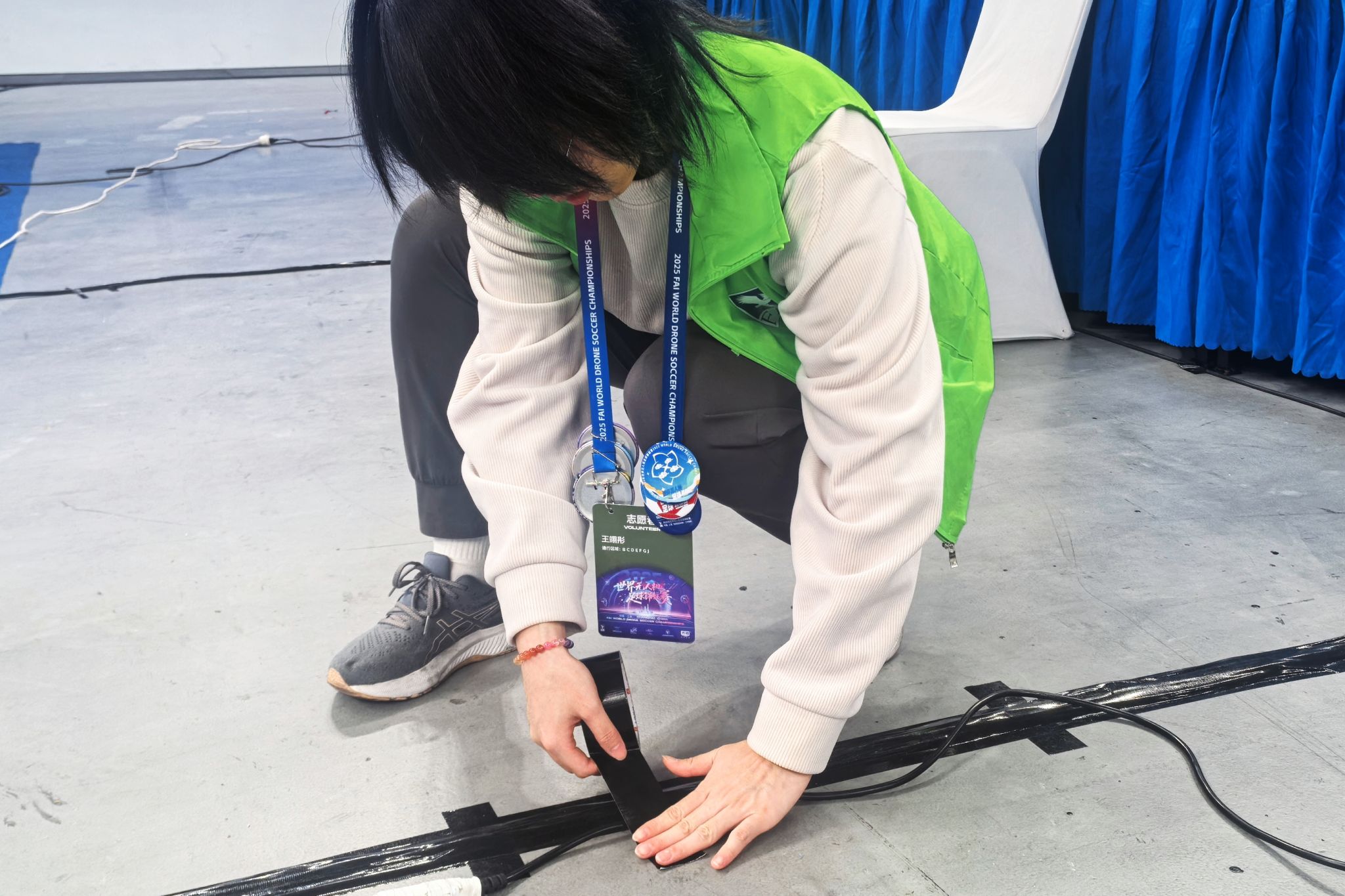 面对强度大、任务重的保障任务,同学们在轮岗休息期间席地而睡,“工作指令就是战斗命令”始终铭记在每一位志愿者心中,竭尽全力服务大赛顺利开展是每一名志愿者的心声。
