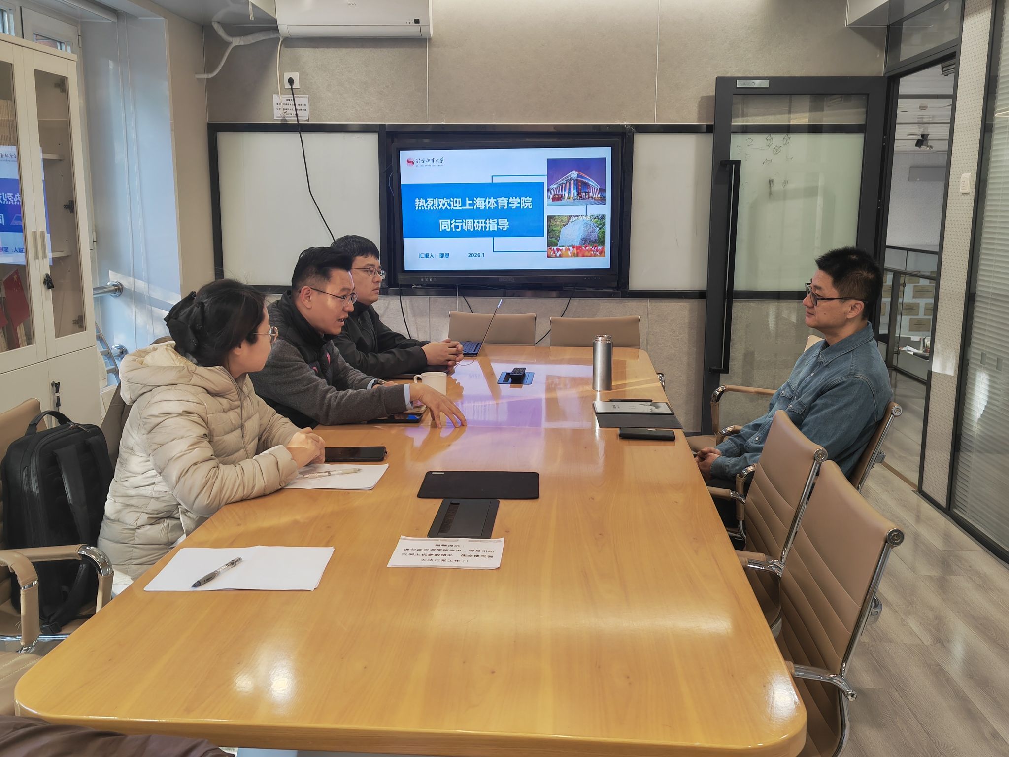 为深入贯彻落实“重服务、强贡献”人才培养改革要求,进一步明确学院“数智+体育+工程”办学定位,更好谋划“十五五”发展,2026年1月22日至23日,智慧体育工程学院院长傅维杰带队,学院班子及骨干教师赴北京体育大学、首都体育学院及国家体育总局相关科研平台开展专项调研,围绕智慧体育学科建设、人才培养体系优化、科研平台协同等重点方向进行深入交流。副院长吴莹,以及智能体育与大数据教学团队负责人徐成龙、计算机应用与智能技术教学团队负责人姜曾贺参加了本次调研活动。